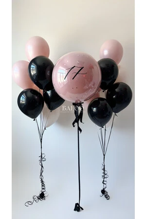 Набор шаров в розовом и черном цвете на день рождения для девочки №2910