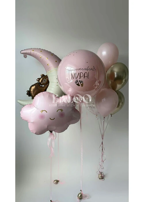 Набор гелиевых шаров на выписку девочки с мишкой на луне и облаком №3211 — отзывы