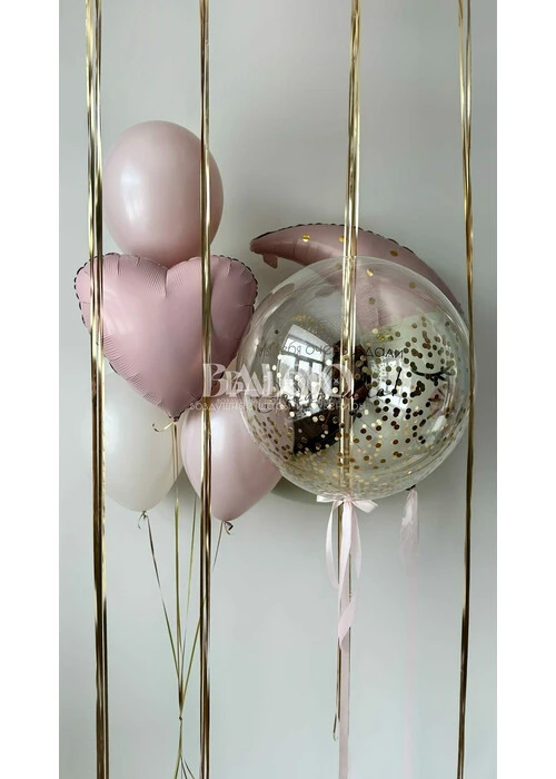 - Латексный гелиевый шар-баблс 24 дюйма с индивидуальной надписью и с наполнением конфетти*
