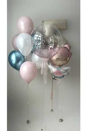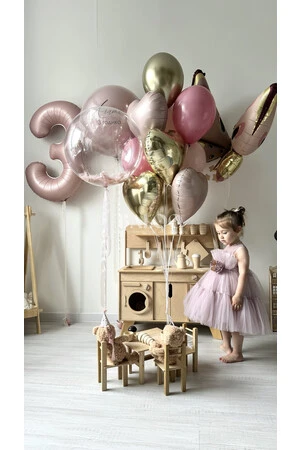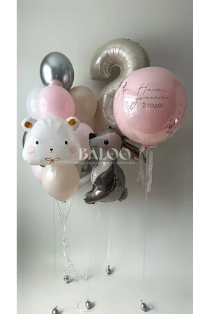 Набор гелиевых шаров с Бубой и розовой цифрой для девочки №2958