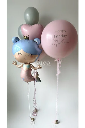 Набор с большим шаром, цветком и связкой на день рождения девочки №7390
