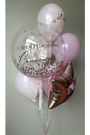 Набор гелиевых шаров с прозрачным шаром на день рождения девушки №2950
