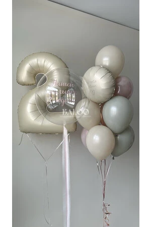 Набор гелиевых шаров с бежевой цифрой и кругом с надписью на день рождения №3044