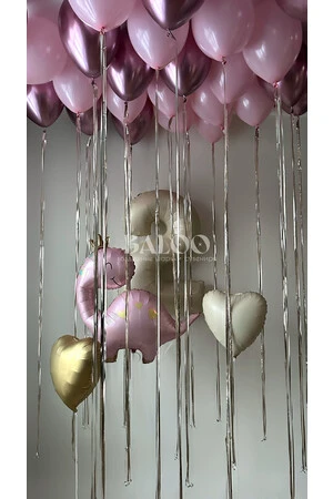 Набор гелиевых шаров с большим шаром и связками в розовом цвете №2988