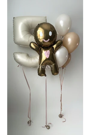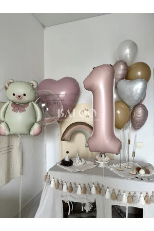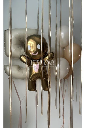 Набор гелиевых шаров с мишкой и бежевой цифрой на день рождения №2962