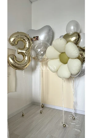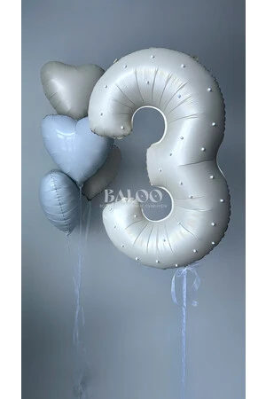 Набор гелиевых шаров с белой цифрой на день рождения №2968