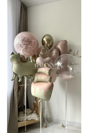 Набор гелиевых шаров на годик с бежевой цифрой и большим шаром №2011