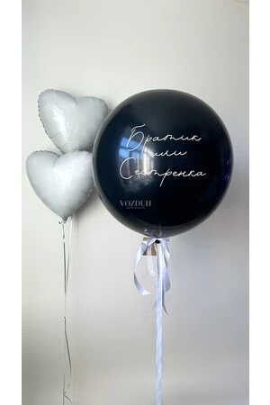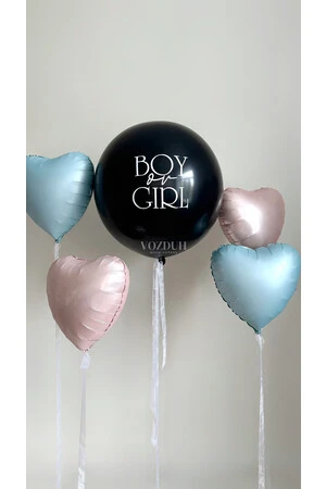 Набор шаров на гендер-пати с большим черным шаром и сердцами №3430
