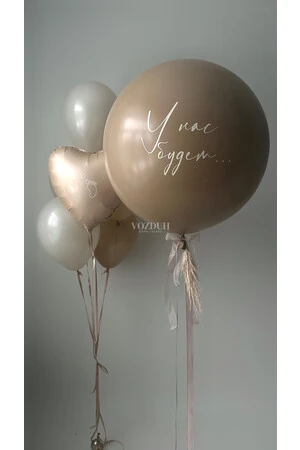 Набор гелиевых шаров на гендер-пати с бежевым шаром №3435