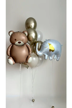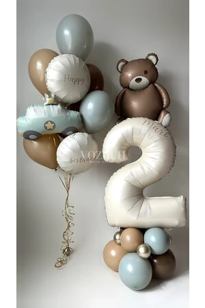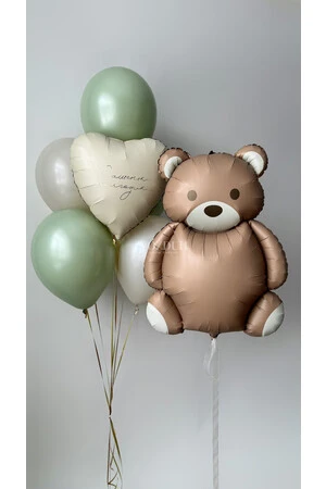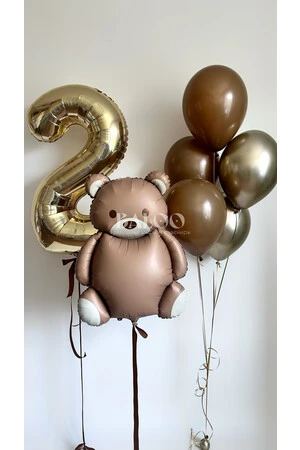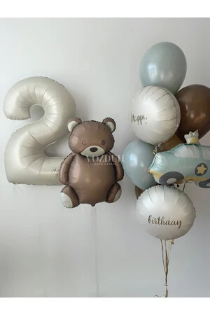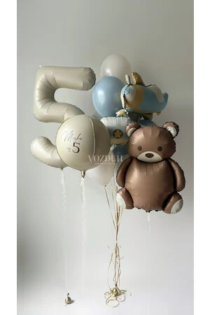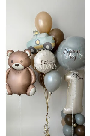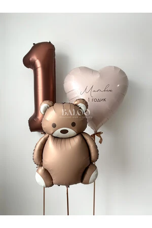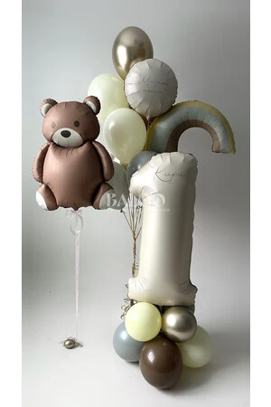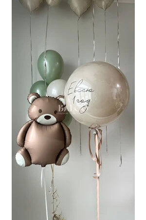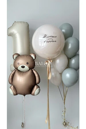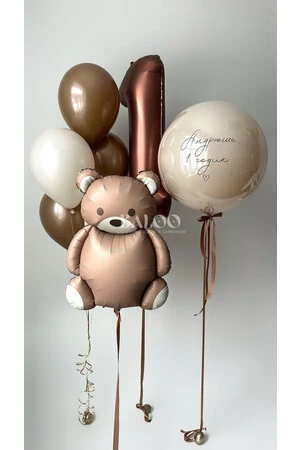 Набор гелиевых шаров с мишкой и бежевой цифрой на день рождения №2962