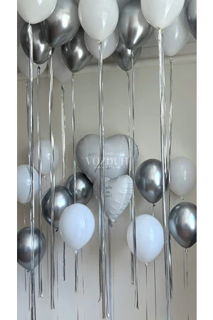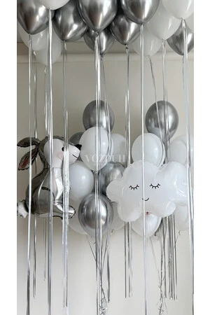 Набор шаров в белом и серебряном цвете на день рождения №2078