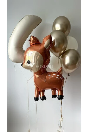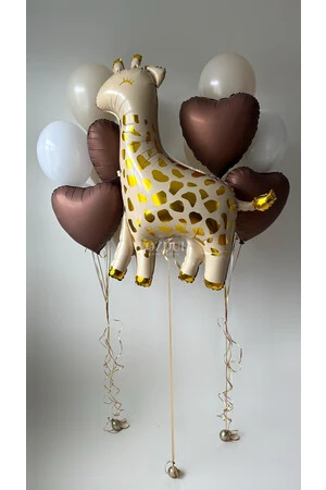 Набор гелиевых шаров на годик с жирафом и зайкой №3301