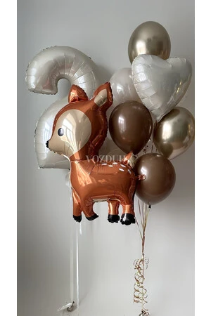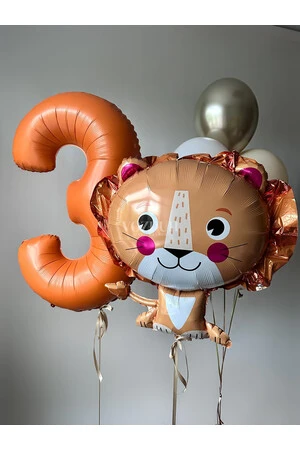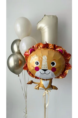 Набор гелиевых шаров со львом и бежевой цифрой для мальчика №3123