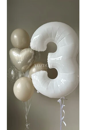 Набор гелиевых шаров с белой цифрой на день рождения №2968