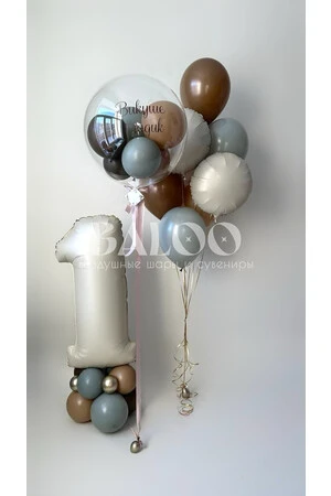 Набор гелиевых шаров с бежевой цифрой и большим шаром с надписью на годик №3144