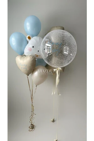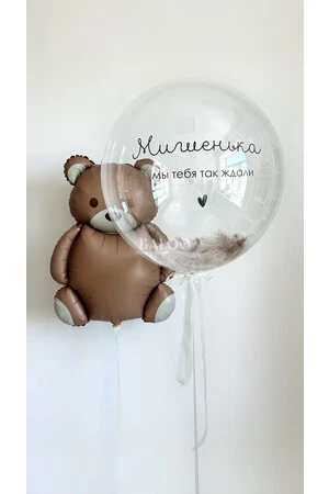 Набор гелиевых шаров с мишкой и большим прозрачным шаром №3108