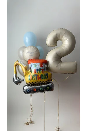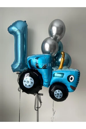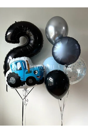 Набор гелиевых шаров с синим трактором на день рождения мальчика №3150