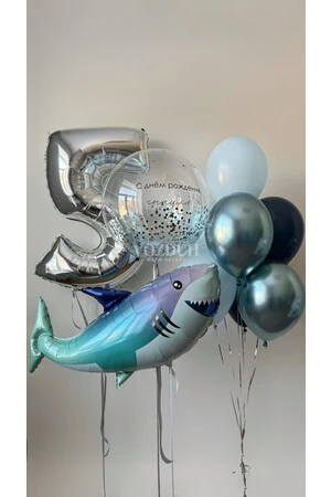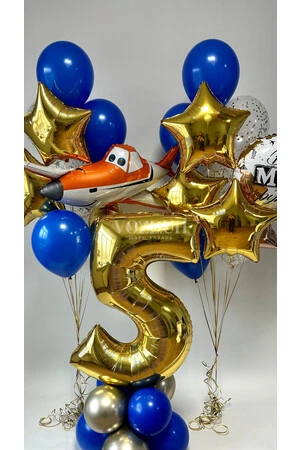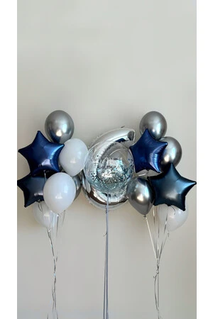 Набор гелиевых шаров в синем цвете с цифрой на день рождения мальчика №3124