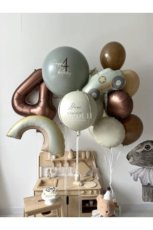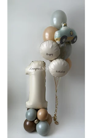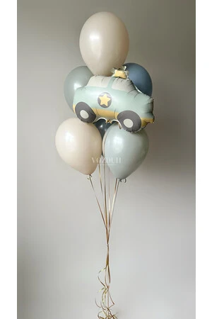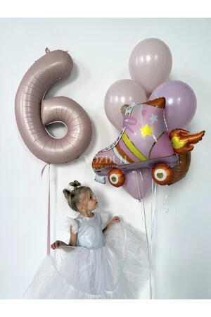 Набор гелиевых шаров с бежевой цифрой с именем и машинкой №3110