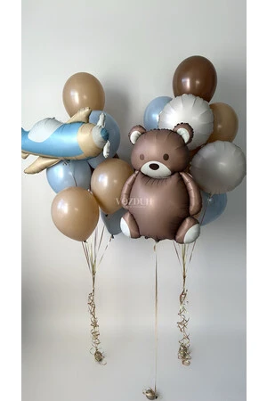 Набор с мишкой, облаком и большим шаром в бежевых и коричневых цветах №8880