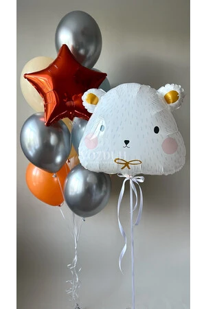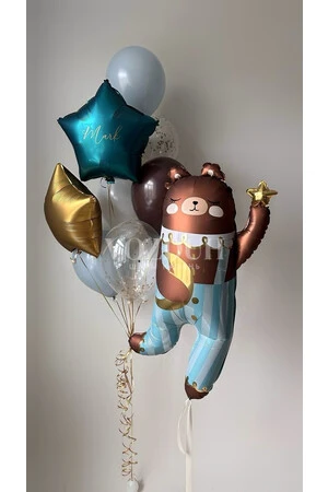 Набор гелиевых шаров на день рождения с мишкой №2960