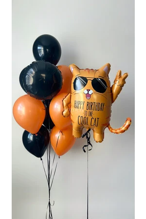 Набор гелиевых шаров со смешным котом на день рождения №3130