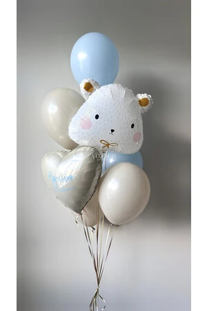 Набор гелиевых шаров на выписку с мишкой для мальчика №3257