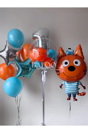 Набор гелиевых шаров "Три кота" с котом Компот для мальчика №3111