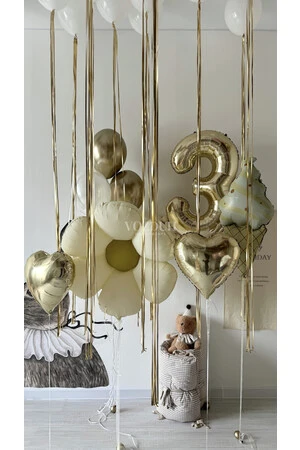 Набор гелиевых шаров с мишкой и золотой цифрой на день рождения №3122