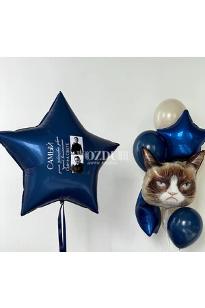 Набор гелиевых шаров с котом и большой звездой на день рождения мужчины №3131