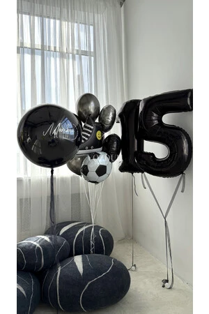 Набор с чёрными цифрами, чёрным шаром, кроссовком и футбольным шаром для мальчика подростка №8126