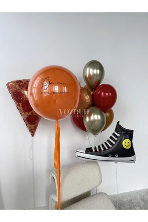 Набор с оранжевым шаром, пиццей, кроссовком и связкой для мальчика и подростка №9562