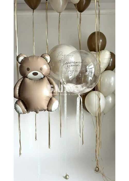 Набор гелиевых воздушных шаров на выписку коричневые шары и мишка №9864 — отзывы