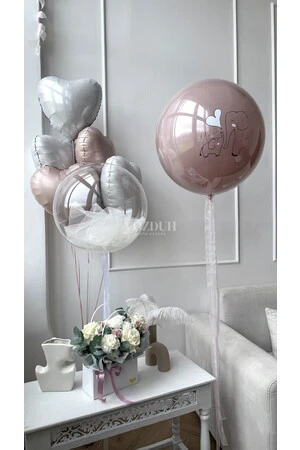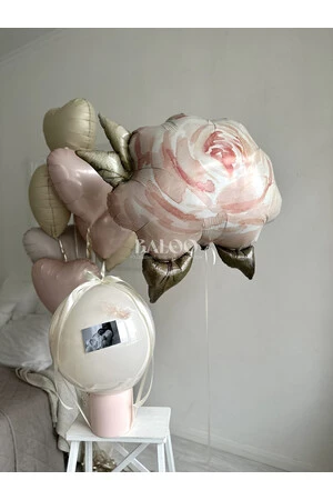 Набор гелиевых шаров с цветком и боксом для мамы №1