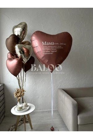 Набор гелиевых шаров сердце с надписью для мамы №6