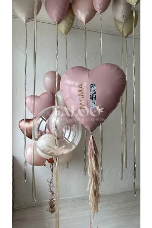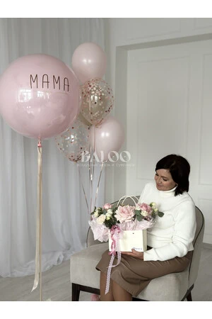 Набор гельевых шаров с двойным шаром и надписью для мамы №9