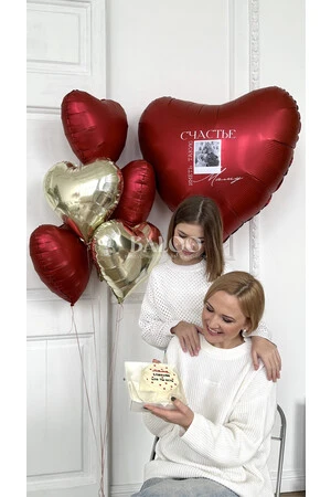 Набор гелиевых шаров для мамы с красными сердцами и тортом №25