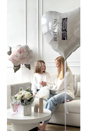 Набор гелиевыхшаров для мамы сердце с фото и дождиком №7