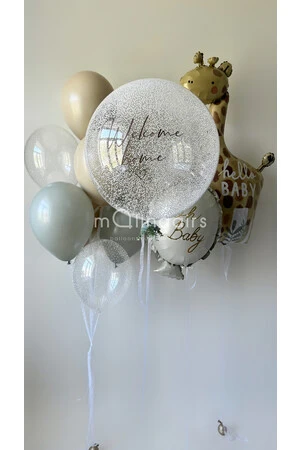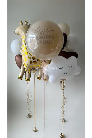 Набор гелиевых шаров на выписку с жирафом и облаком и большим шаром №3247