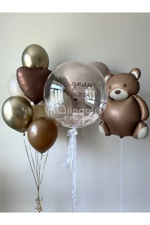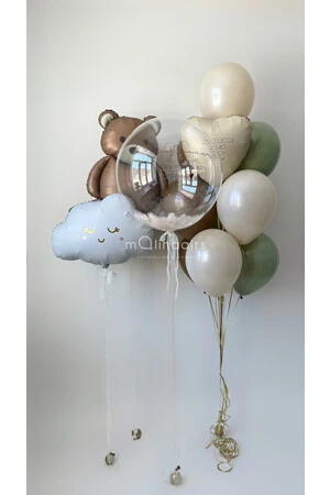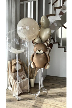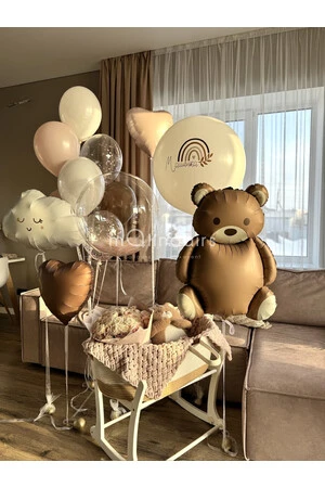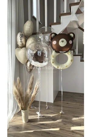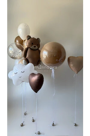 Набор с мишкой, облаком и большим шаром в бежевых и коричневых цветах №8880