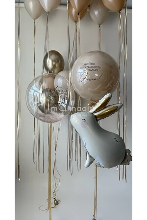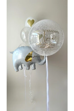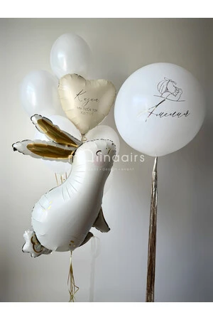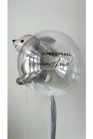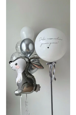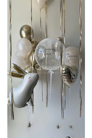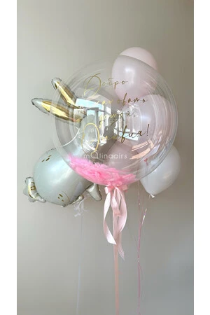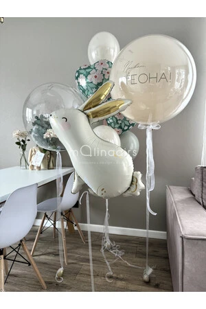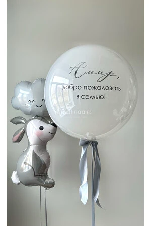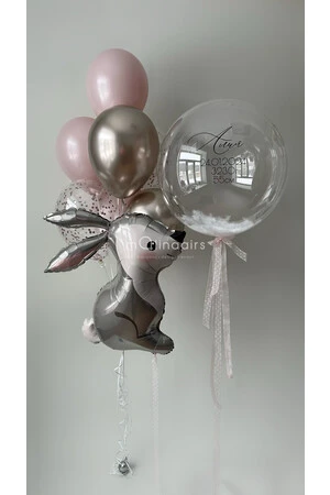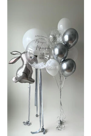 Набор гелиевых шаров с зайкой и прозрачным шаром с надписью на выписку №3215