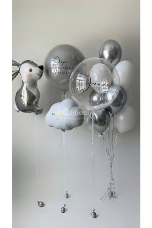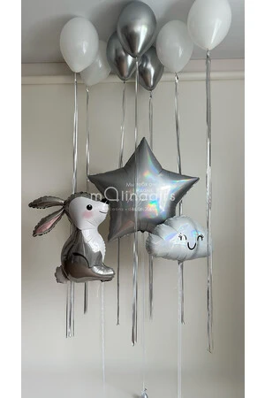 Набор шаров с зайчиком, облачком и большим шаром на выписку №3225