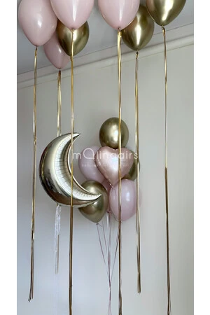 Набор гелиевых шаров на выписку девочки с полумесяцем с мишкой №3213