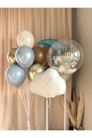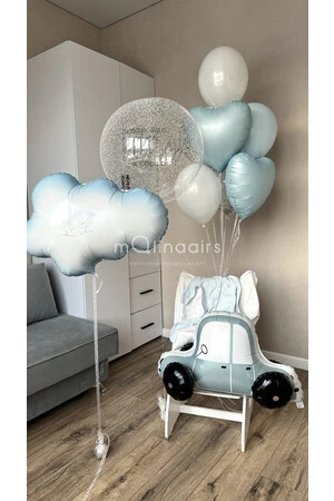 Набор гелиевых шаров на выписку с облаком и голубыми шарами №3230