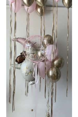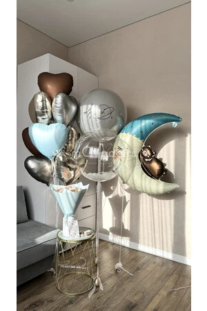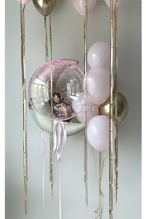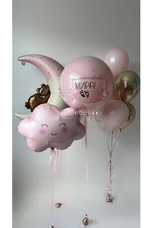 Набор гелиевых шаров на выписку девочки с мишкой на луне на №3272