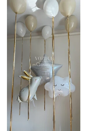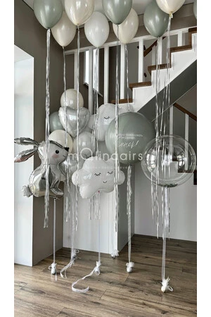 Набор шаров с зайчиком, облачком и большим шаром на выписку №3226