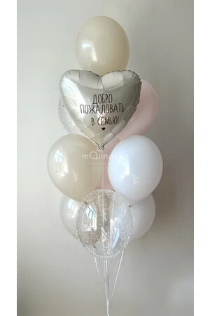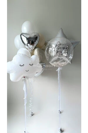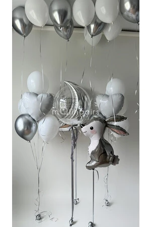 Набор гелиевых шаров в белом и серебряном цвете на выписку №3224