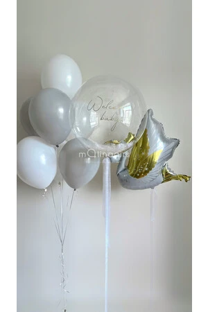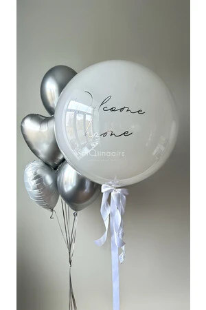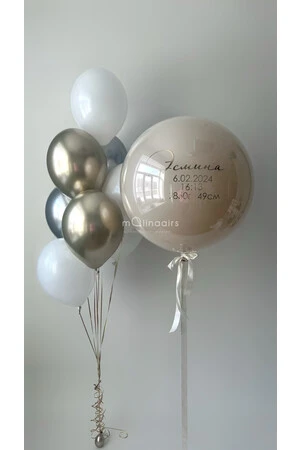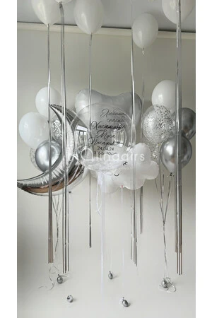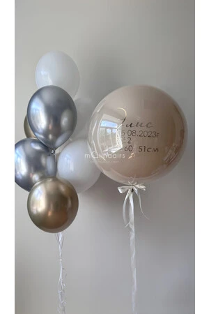 Набор гелиевых шаров на выписку в белом и серебряном цвете №3263