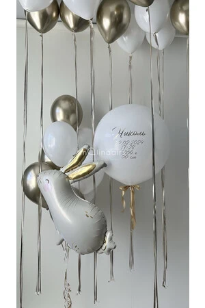 Набор гелиевых шаров на выписку с зайчиком №3255
