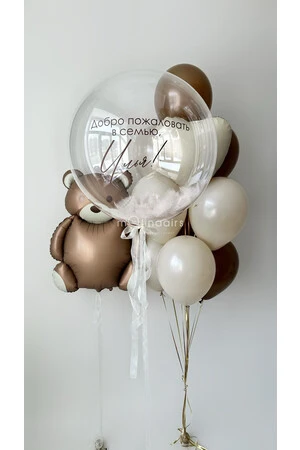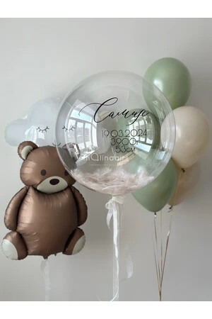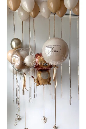 Набор гелиевых шаров на выписку с мишкой и воздушным шаром №3256